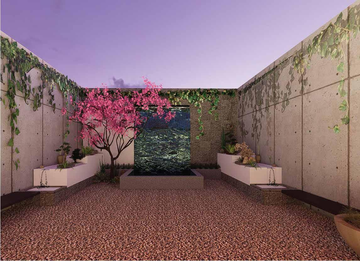 Inside the restaurant there is a space we were asked to make a connection with the outer area which should transmit peace. We integrate elements such as water and plants to generate a natural environment in which people can rest and enjoy after eating.