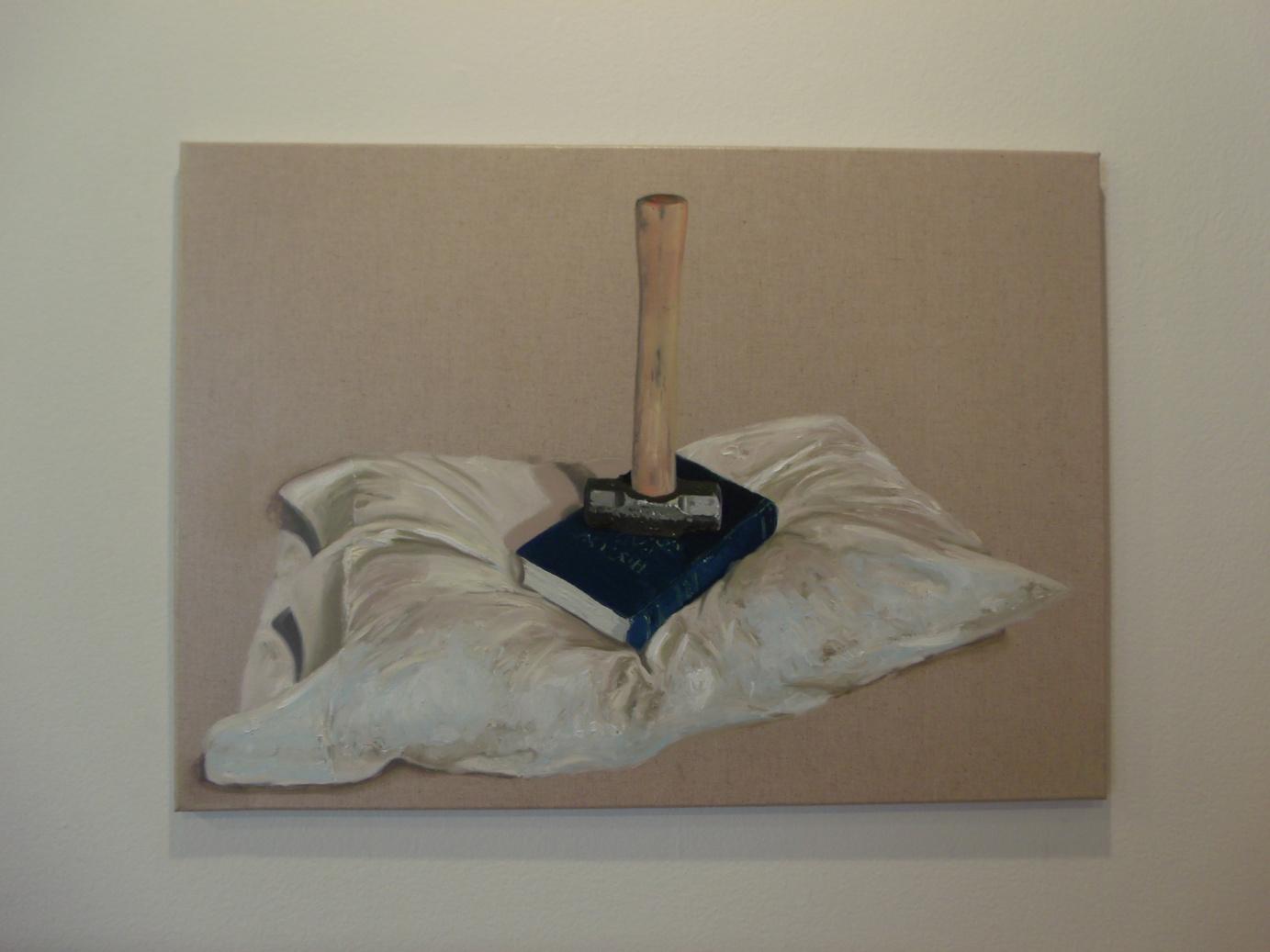 El trabajo de Luis Hernández Mellizo aborda preocupaciones de la actividad del pintor, vista desde lo material, histórico y conceptual; y el lugar del artista dentro de la sociedad Para la exposición de “Construcción de una lugar mejor, o menos peor ” Hernández continua analizando la interpretación de objetos simbólicos Escudos, mapas, esculturas y monumentos, normalmente estos objetos se les otorga un único significado, pero se les puede replantear el sentido tan pronto entran a las salas de exposición