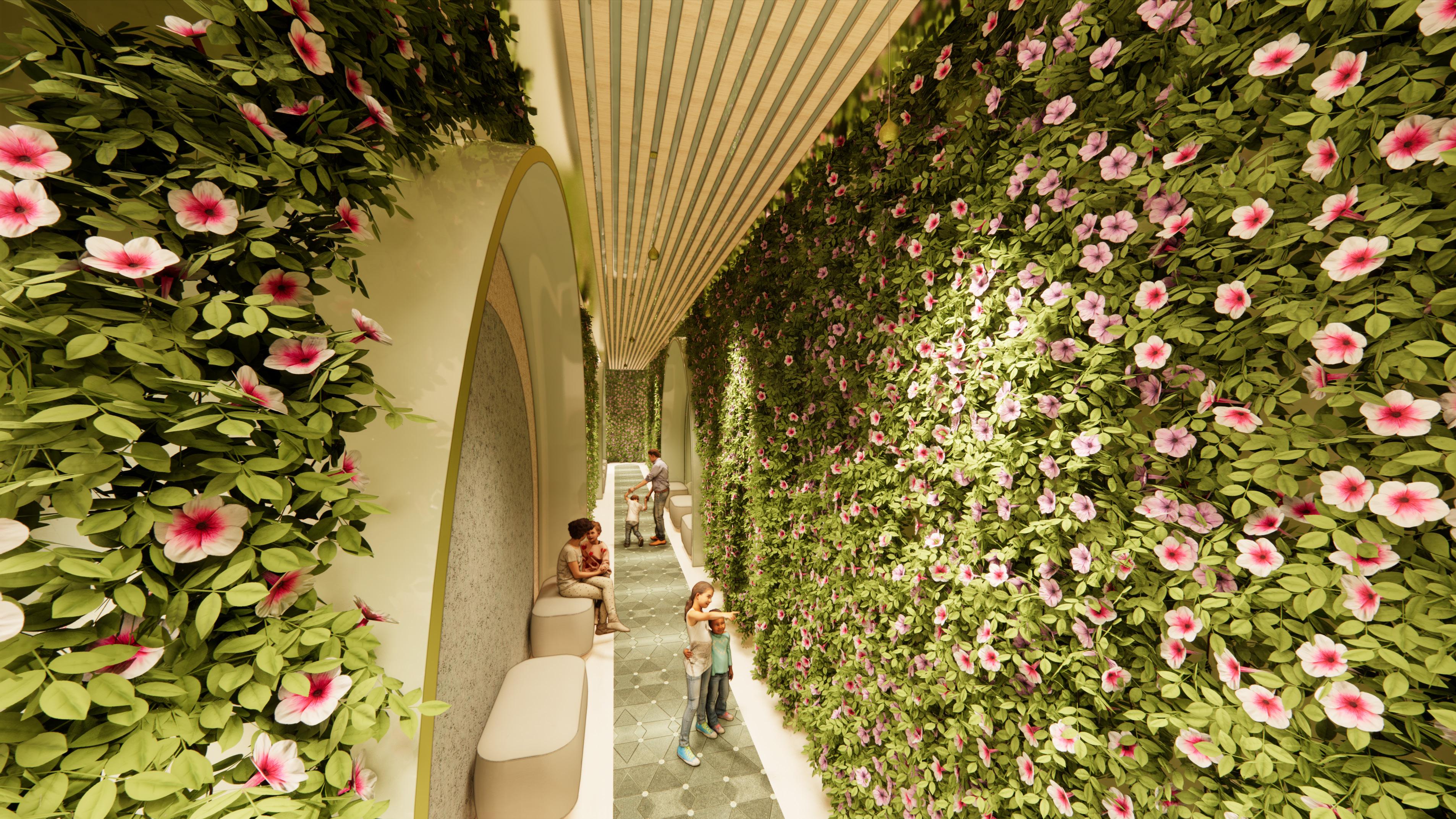 Alcoves built into the wall of the waiting area accommodate children of various ages and incorporate the prospect and refuge theory.