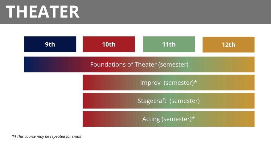Theater is a dynamic, collaborative art form that involves the investigation of different cultures, artistic expressions, understanding of stagecraft, as well as actor training. Specifically, this class will focus on the understanding and exploration of Theater; furthermore, the journey from its origins to its contemporary expressions will guide the students to discover and practice this discipline- both on and off stage. This course welcomes all students who wish to dive into the world of theater and acquire new skills for life. This course is performance-based, assessments will be performed on stage at the end of each unit.