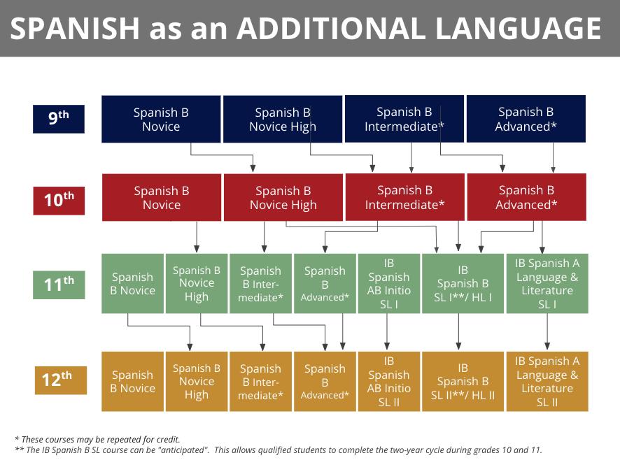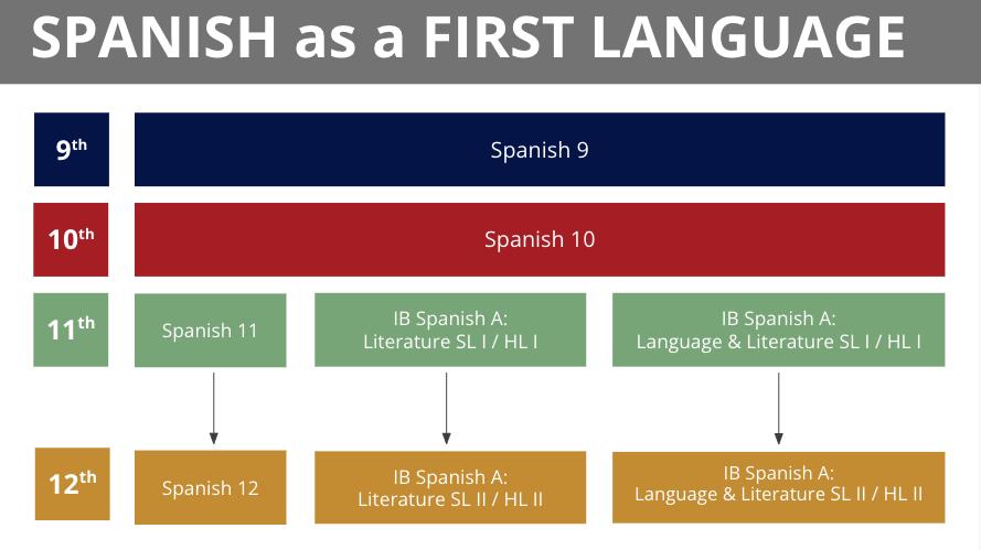 This is the second year of a two-year IB standard level course. In the second year, students will continue to work on developing their listening, speaking, reading, writing, presenting, and performing skills. They will continue to work on analysis, interpretation, and evaluation. The course culminates with the two exam papers in May.