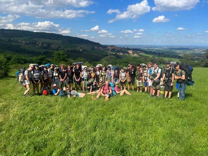 Vandaag dag 10 we vertrokken vanuit Dardilly camping de Lyon naar Craponne. we vertrokken met een goede mood een nieuwe dag. We wandelden door de bossen en mooie paadjes. Genoten van de natuur en de zon. Na enkele kilometers maakten een eet stop waar de jongens genoten van een grote fontein om even te verfrissen. Na het verfrissen en lekker eten trokken we verder naar Craponne daar kwamen we aan in een pastorietuintje. We hadden toen even rust en krijgen een stukje watermeloen, daarna zetten we de tenten op en starten met koken. Vandaag aten we fisticks met spinazie en maïspuree. Nadat we genoten van ons avond eten maakte de leiding de voortotems van de 3 de jaars bekend. Tenslotte sloten we onze avond af met een chipje en drankje om onze voortotemstevieren.Slaapwelentotmorgen!