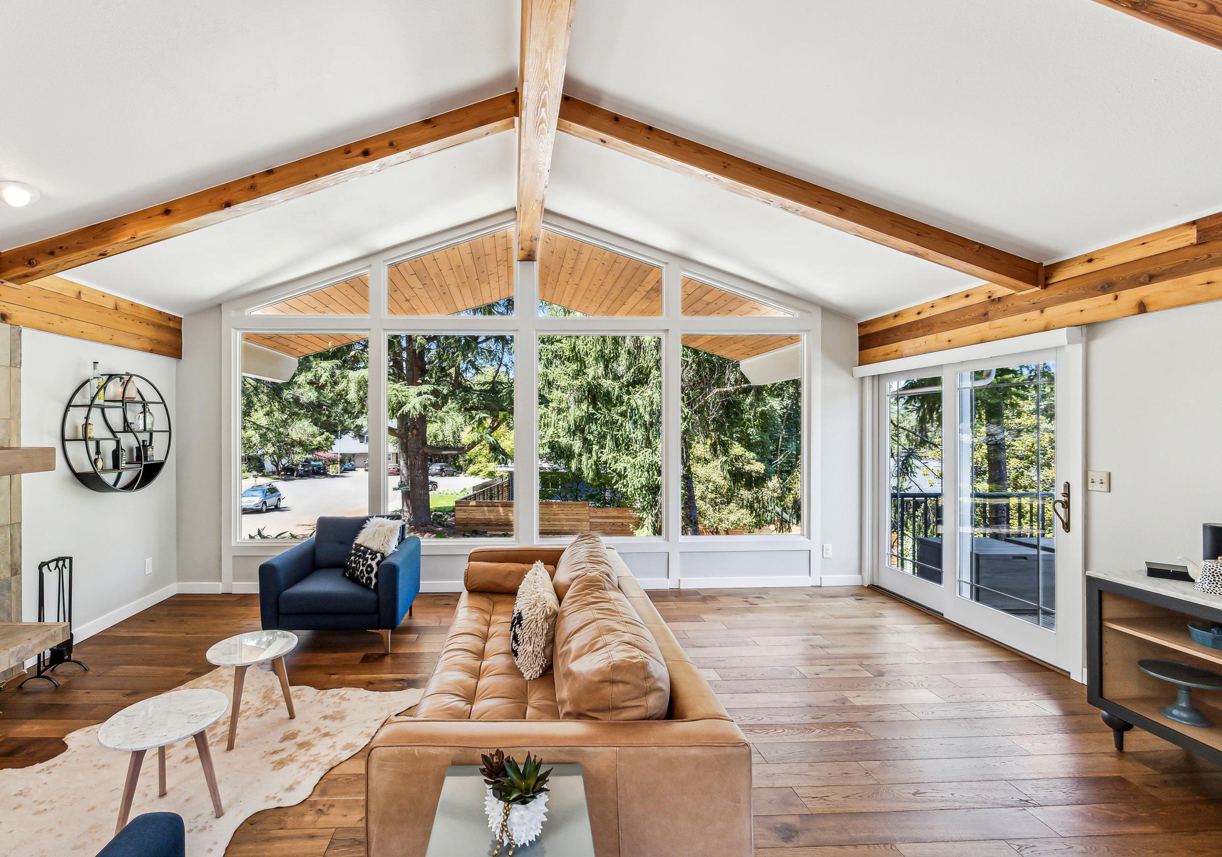 Welcome to an exquisitely crafted residence in the coveted Palisades neighborhood. Experience unparalleled tranquility in this recently restored home, showcasing designer-inspired styles and finishes throughout. The open floor plan boasts vaulted ceilings with cedar beams and custom millwork, creating a modern and inviting ambiance.