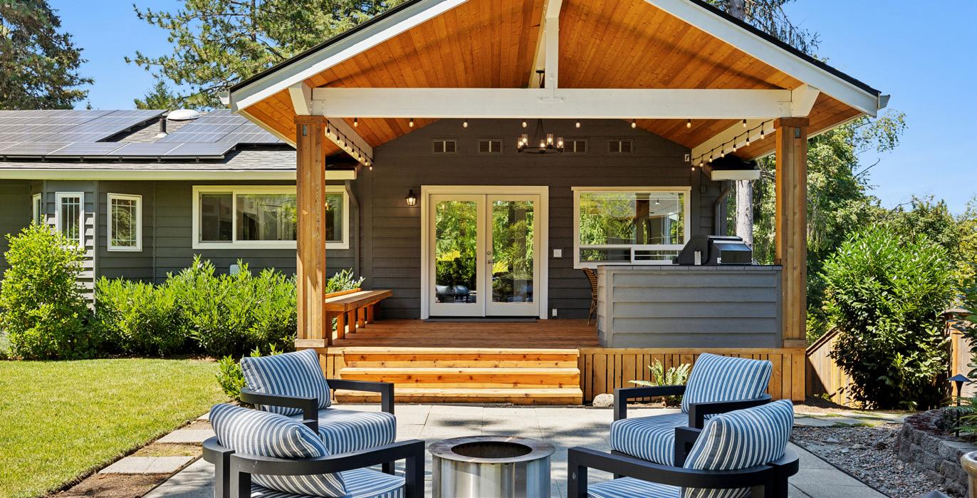 Outdoor living is redefined with a covered entertaining area, built-in BBQ and food prep station, flat lawn, and a stone patio perfect for gatherings. Notable recent upgrades include the addition of a 190 sq ft detached office/studio (included in overall square footage), full solar installation, a new HVAC system, water heater, wine closet, and more.