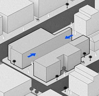 INTRODUCE ADDITIONAL MASSES OR SUBTRACT SECTIONS FROM THE RECTANGULAR BOX. THIS COULD INVOLVE APPENDING SMALLER VOLUMES, CREATING VOIDS, OR CUTTING INTO THE BOX TO FORM OPENINGS OR RECESSES.