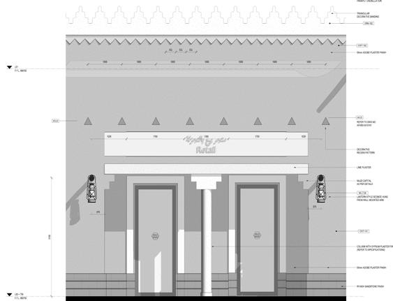 As the Adobe plaster is meticulously applied to the external wall in successive layers, it sets the stage for the artisan’s deft hands to impart the Najdi pattern. This manual process, rooted in tradition, ensures the authenticity and uniqueness of each stroke, making the external wall a living testament to the craftsmanship of the past. Imbued with cultural significance, the Najdi-patterned external wall becomes a community-driven project. Involving local artisans, stakeholders, and the market’s residents ensures that the design resonates authentically with the ethos of the old souk. Workshops and community events become a platform for shared appreciation of heritage. The end result is more than a mere external wall; it is a living piece of art that harmonizes with the market’s historical charm. The Adobe plaster finish with the Najdi pattern elevates the aesthetic appeal of the old souk, seamlessly blending tradition with the contemporary spirit of the bustling market.