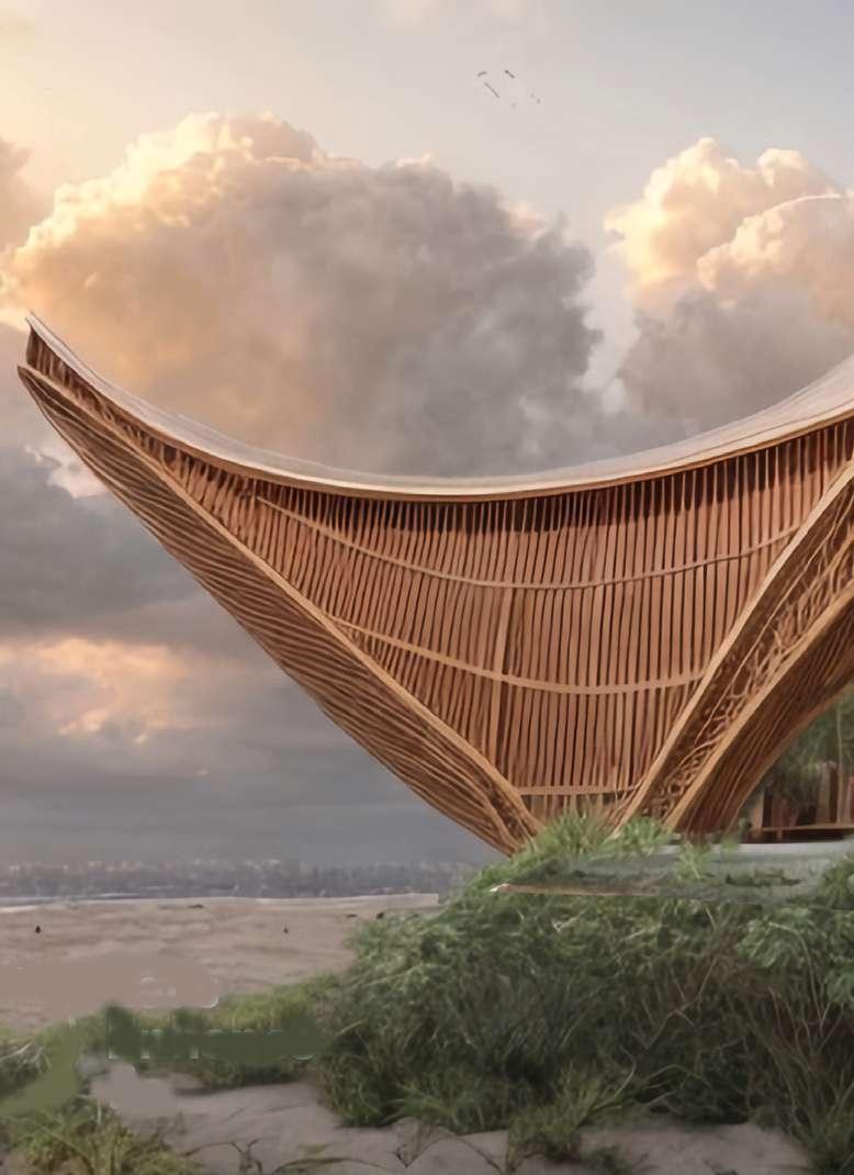 A groundbreaking roof structure inspired by the elegant efficiency of nature, our parametric wooden truss design draws inspiration from the intricate half-leaves found in the natural world. Utilizing advanced parametric modeling tools, we’ve translated the organic branching patterns and venation systems of leaves into a flexible and dynamic architectural solution. This biomimetic approach not only showcases aesthetic beauty but also integrates structural intelligence, mirroring the strength and adaptability observed in nature. Crafted primarily from sustainable wood, the truss system embodies a commitment to eco-friendly design. With a focus on half-leaf symmetry, the design seamlessly blends asymmetry with structural integrity, resulting in a visually stunning and functionally robust roofing solution. Embrace innovation rooted in nature with our parametric wooden truss, an embodiment of sustainable design inspired by the graceful efficiency of half-leaves.