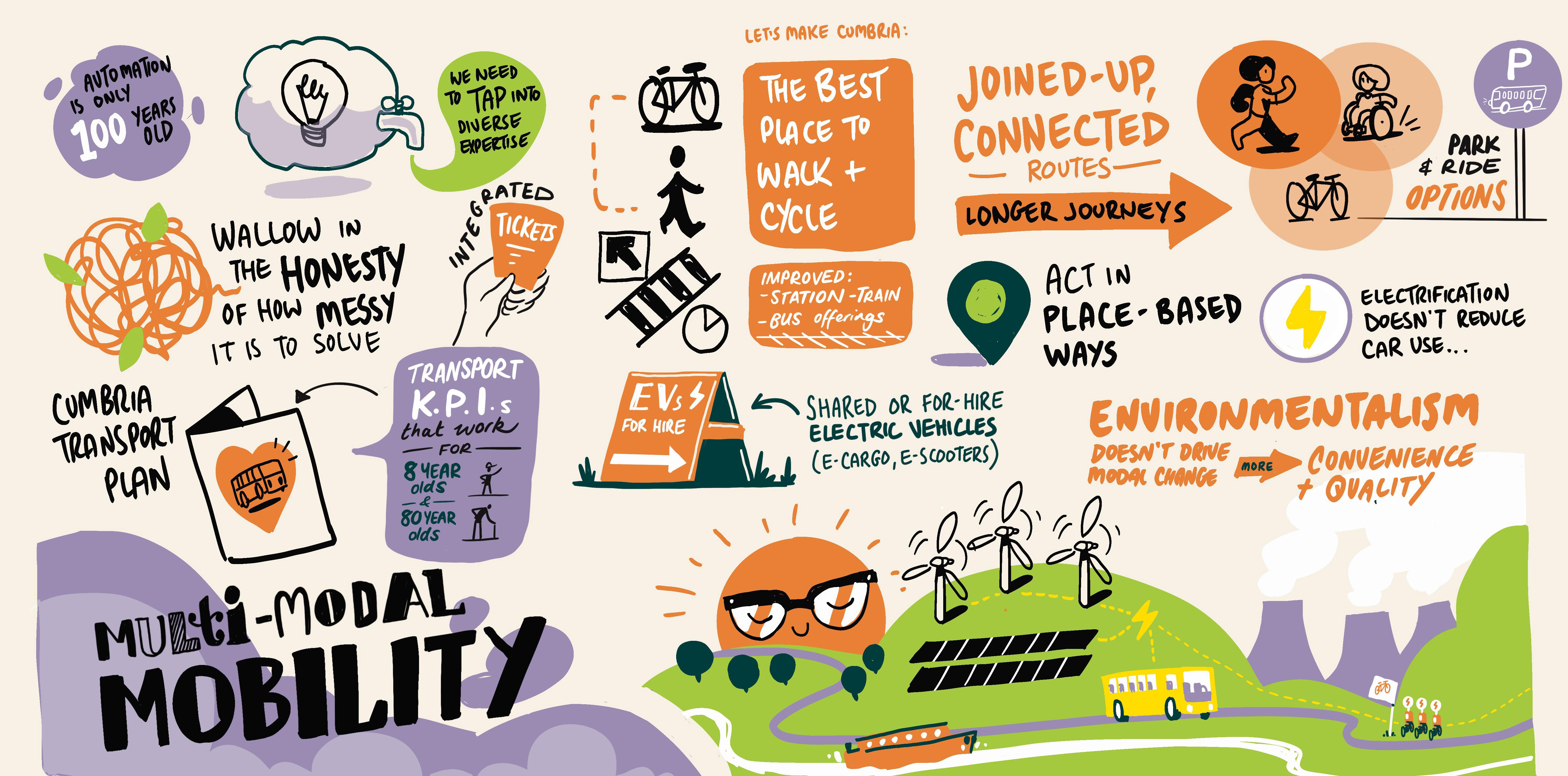 Our reflections here are just part of a big story about place-based mobility futures, definitely not a roadmap. We have tried to engage with as much as possible of the previous day’s discussion, but we invite you to tell us your thoughts and ideas, and to move the conversation on.