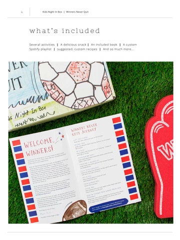 what’s included Several activities | A delicious snack | An included book | A custom Spotify playlist | suggested, custom recipes | And so much more‌.