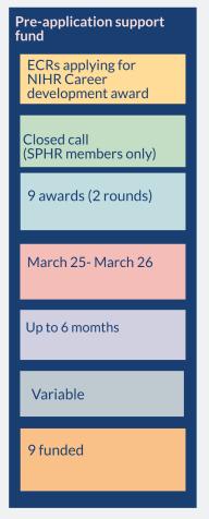 We continue to make substantial progress in meeting the aims and objectives of our research capacity development programme. This year, we were awarded additional funding to support individuals to prepare strong applications for an NIHR Career Development Funding award. This fund enabled us to fund 9 pre-application support awardees