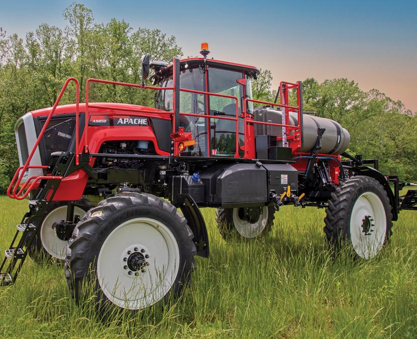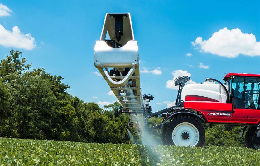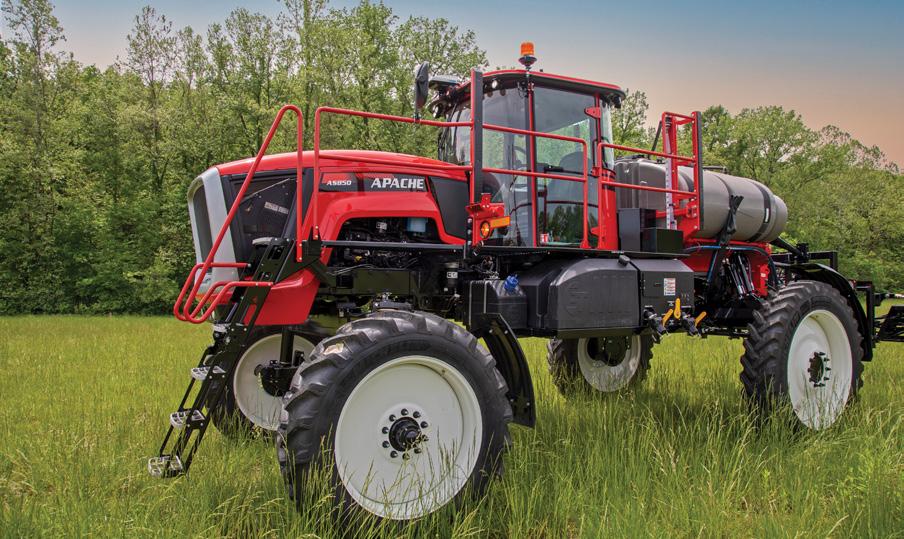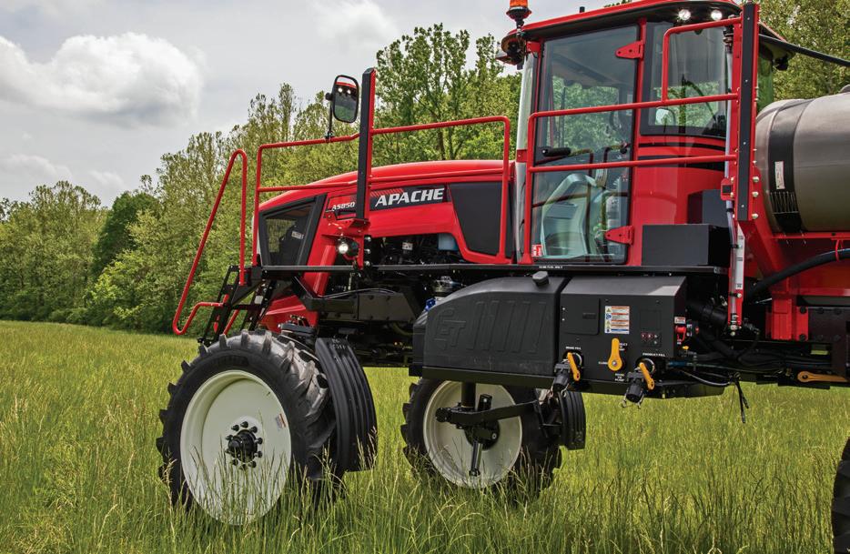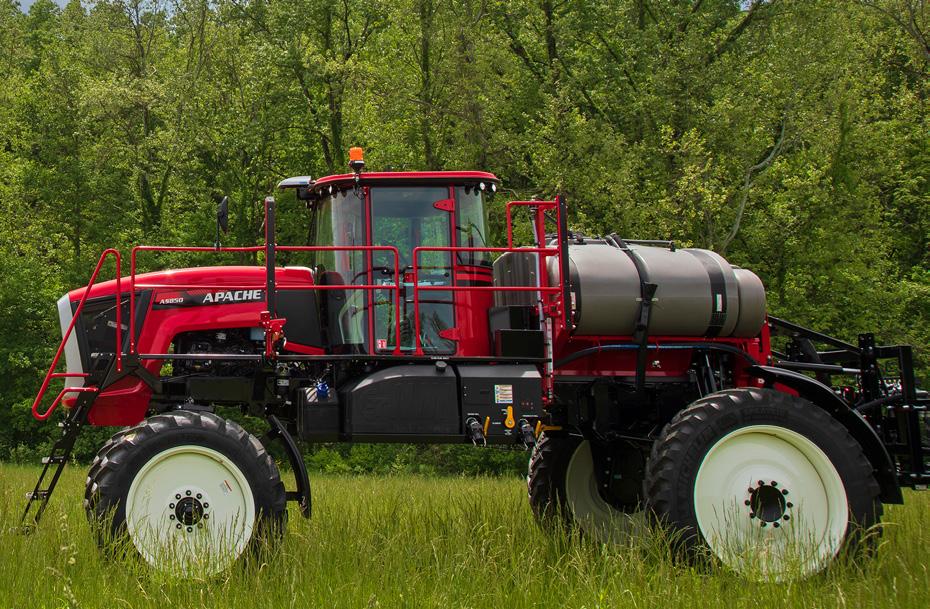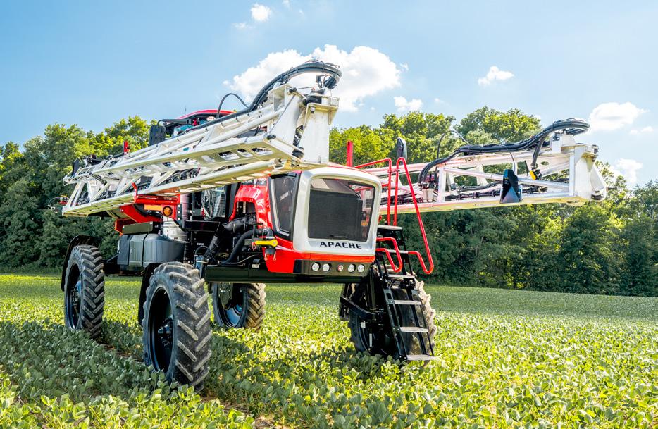 The Apache HS1100 Hydrostatic Sprayer features fourwheel steering and slope compensation with back axle correction for better control on hills and headlands.