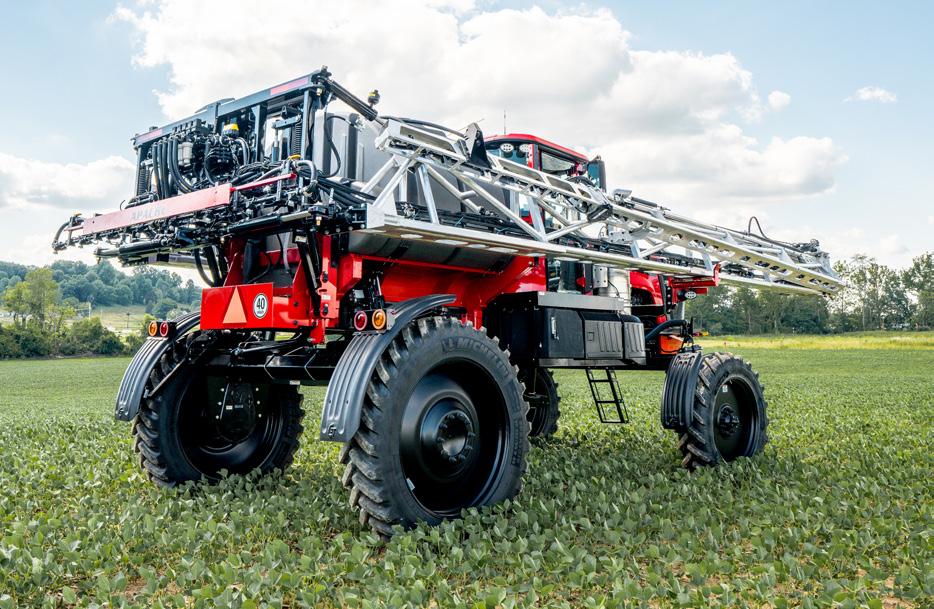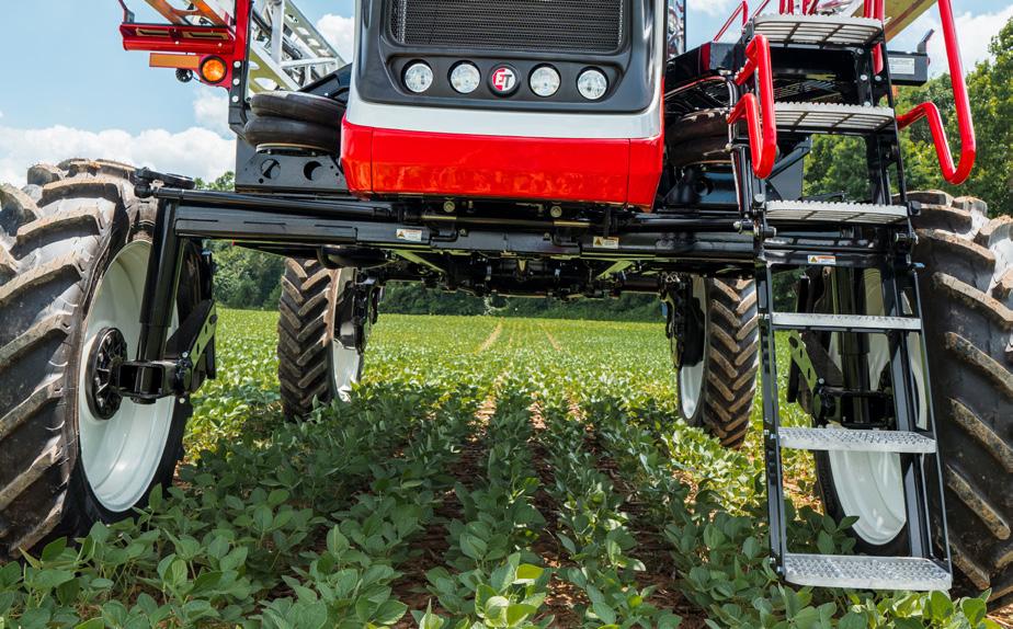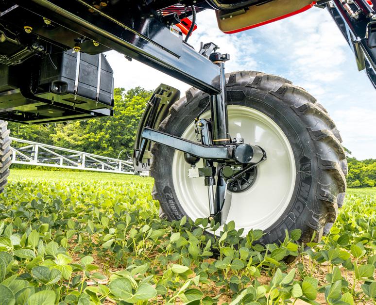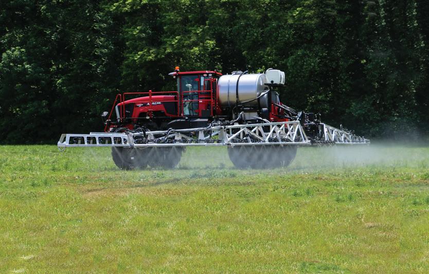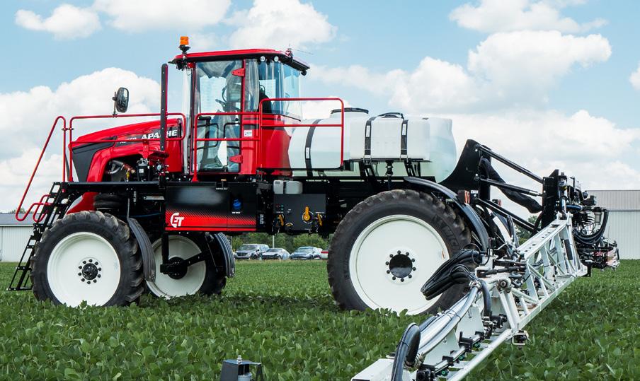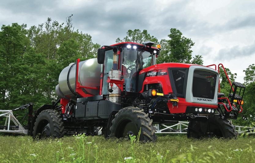 The Apache HS1100 Hydrostatic Sprayer features fourwheel steering and slope compensation with back axle correction for better control on hills and headlands.