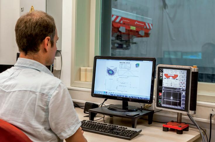 Modelul de împrăștiere 3D este obţ inut folosind distribuitor montat pe utilajul de testare care rotește mașina la 280°. Măsurarea continuă la o frecven ţ ă de 5 HZ în 80 de cuve de colectare, dotate individual cu celule de cântărire, asigură o acurate ţe de testare absolută. Un singur test asigură peste 30,000 măsurători! Rezultatul reprezintă o analiză a împrăștierii foarte exacte cu un grad ridicat de predictibilitate pentru stabilirea modificărilor în vederea adaptării la diferite lă ţ imi și doze.