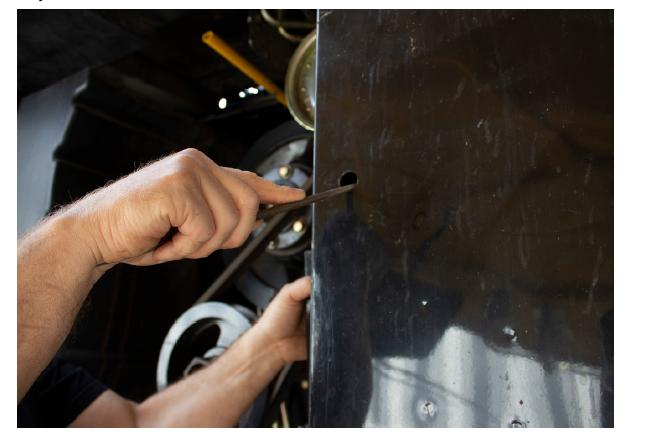 7. Utilizzando una torcia elettrica, guardare nell'ascensore per verificare che non vi siano palette direttamente dietro il foro praticato. Se è presente una paletta, far avanzare la catena dell'elevatore fino a liberare lo spazio dietro il foro.