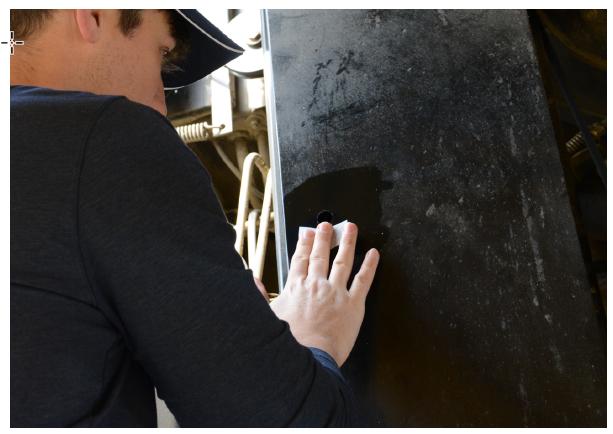 6. IMPORTANTE: Utilizzare un tampone di alcool per pulire accuratamente l'area intorno al foro, assicurandosi che tutto l'olio, il grasso e i residui siano completamente rimossi dalla superficie dell'ascensore.