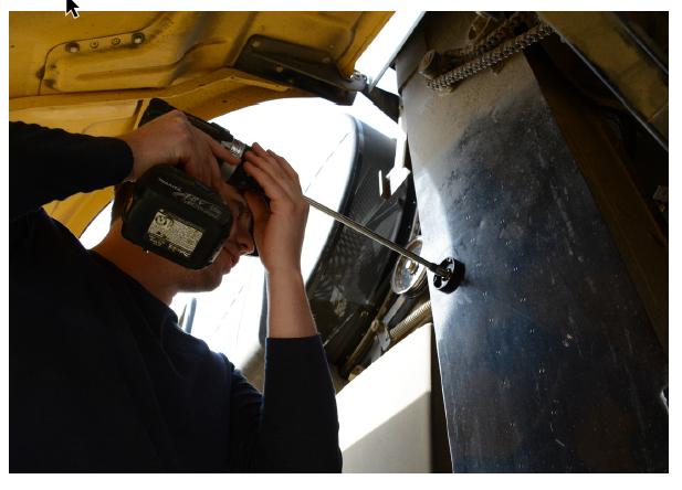 15. Allineare con attenzione la punta del trapano a gradino con il foro pilota nella parete posteriore dell'ascensore. Si sentirà la punta agganciarsi.