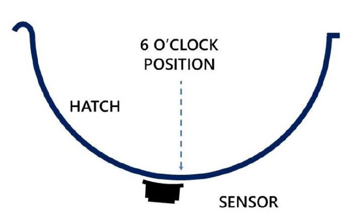 -Il sensore deve essere leggermente scostato dalla linea centrale dello sportello inferiore (approssimativamente centrato tra le 6:00 e le 6:30).