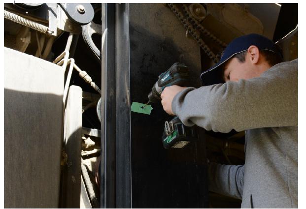 Successivamente, è necessario misurare e segnare i punti in cui praticare i fori per i sensori sull'elevatore per cereali pulito. Nella direzione verso l'alto, i sensori saranno montati sulla faccia interna ed esterna dell'elevatore (dove passano le pale di grano piene).