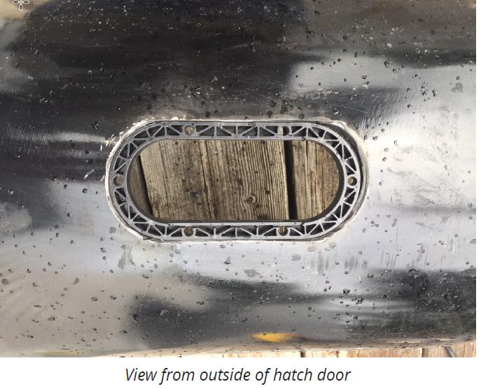 Il sensore deve essere installato in una posizione che sia meno soggetta all'usura dovuta allo scorrimento del grano. Ad esempio, la posizione di installazione sotto riportata è stata scelta per garantire che il sensore non venga installato in presenza di evidenti segni di usura sulla porta (notare la differenza di vernice).