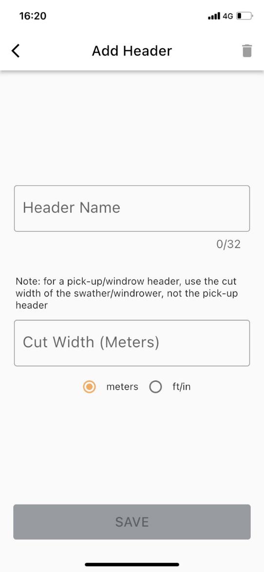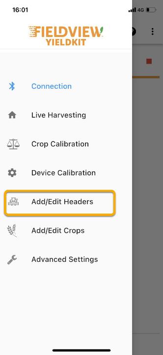 Per il calcolo della resa, il monitor della resa deve sapere quale larghezza di terreno viene raccolta. Per evitare che l'utente debba inserire la larghezza della testata ogni volta che la si cambia, tutte le testate utilizzate dalla mietitrice possono essere inserite e salvate in anticipo. L'utente può selezionare una testata nella schermata Raccolta in diretta.