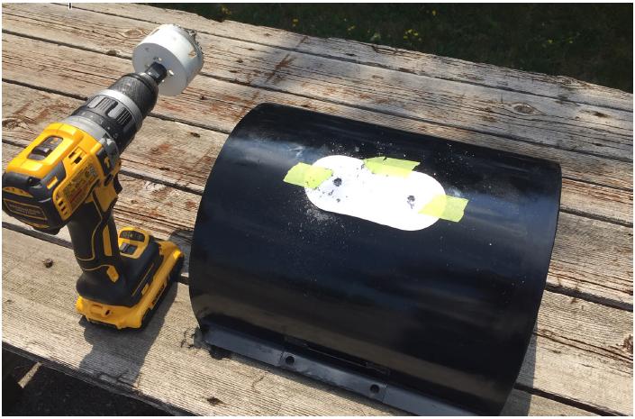 4) Con una sega a tazza da 65 mm, praticare due cerchi a tazza.