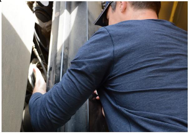 Per dare tempo all'adesivo di polimerizzare, la fase successiva del processo prevede l'installazione del monitor di rendimento e il collegamento all'alimentazione, quindi il cablaggio dalla cabina all'ascensore.