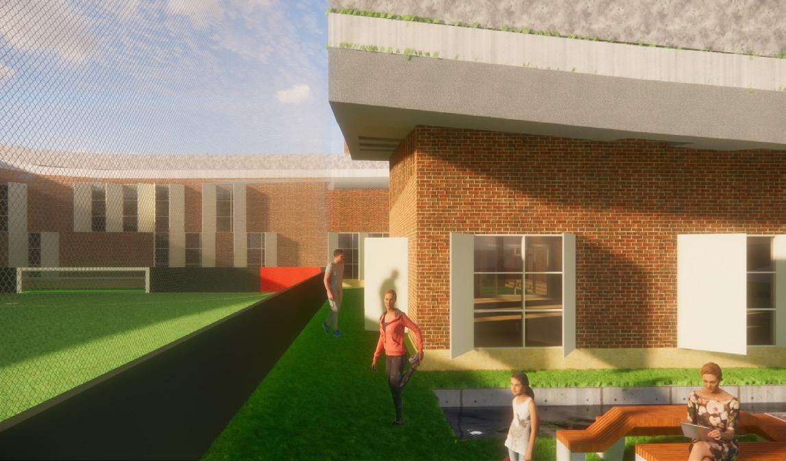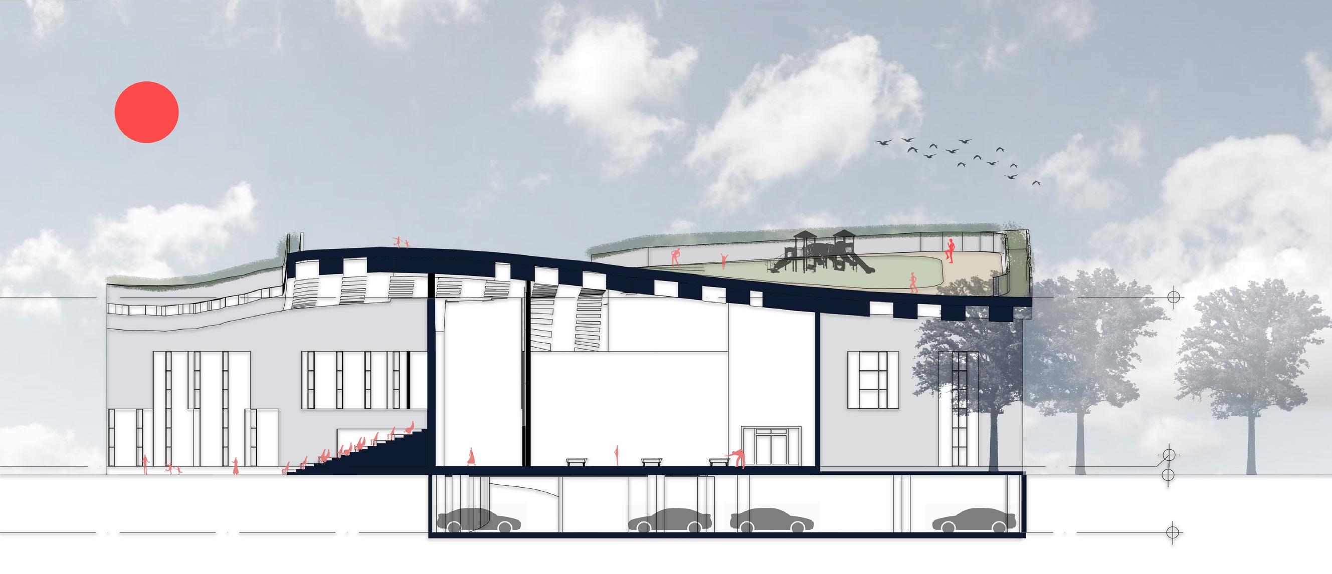 The football ground acts as the central element along with the tennis ground. A children’s park and garden are provided on the rooftop to increase public engagement. GROUNDS