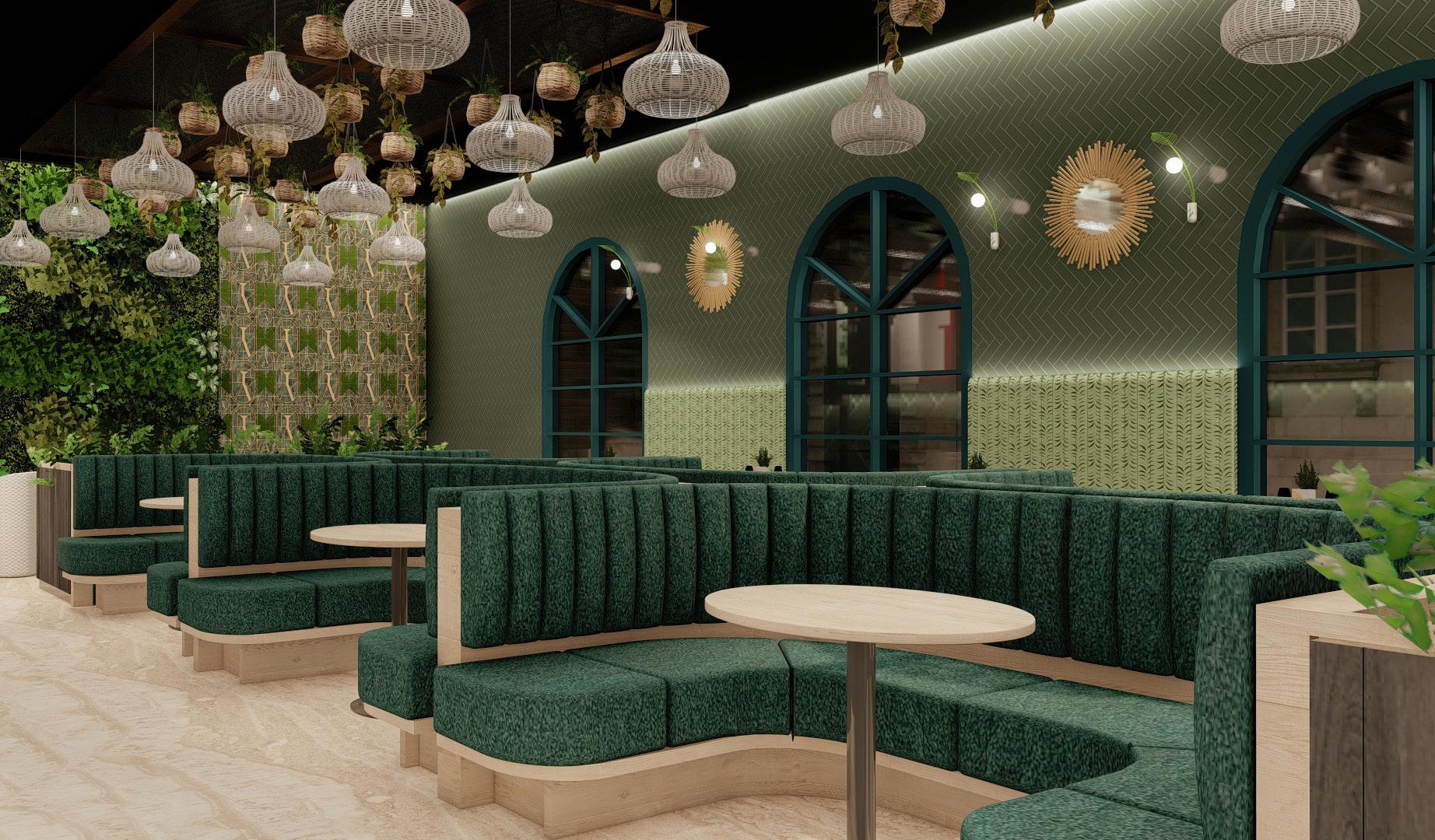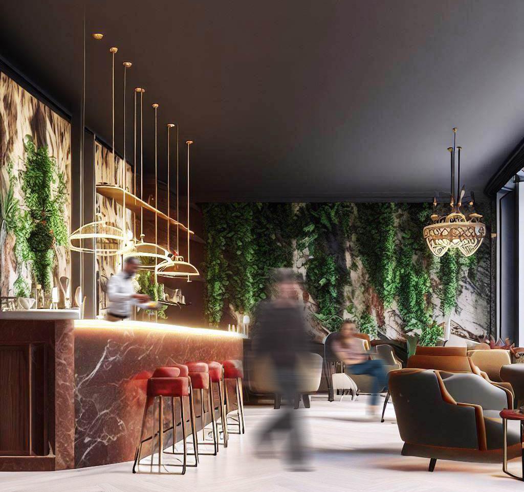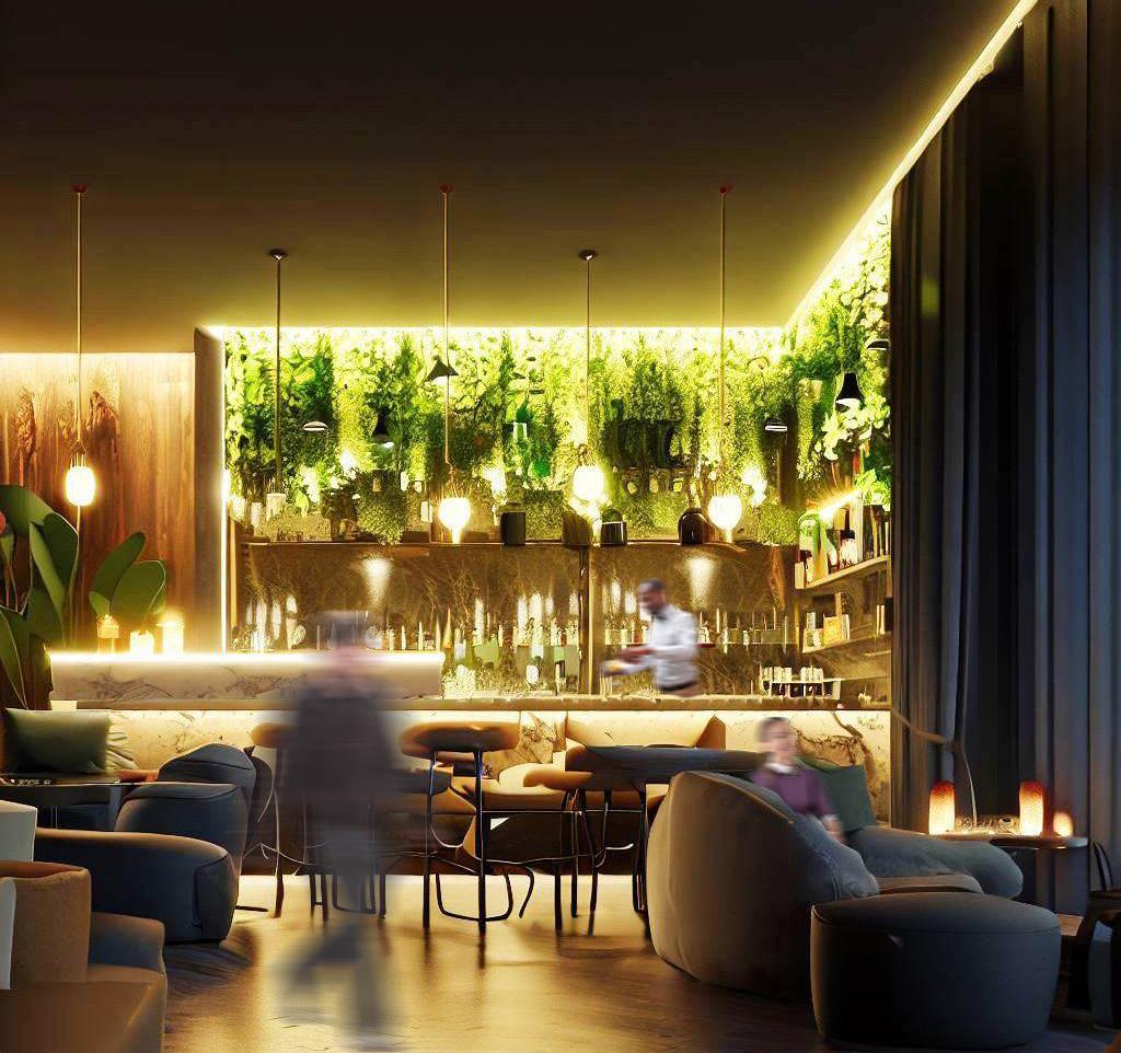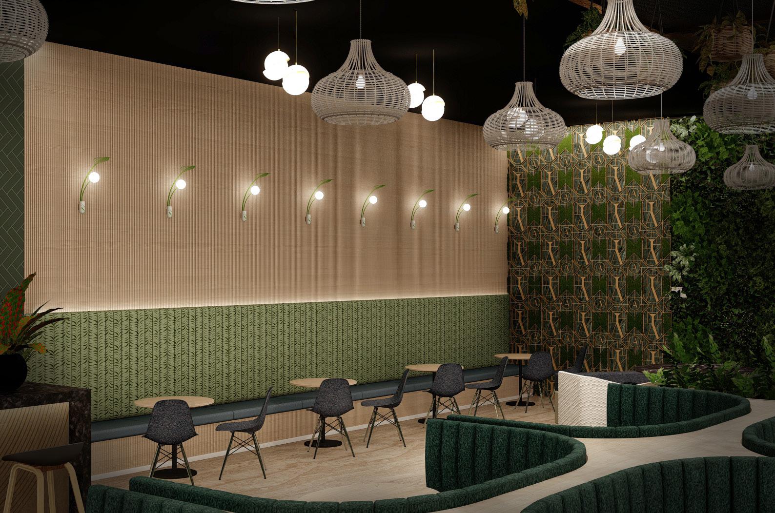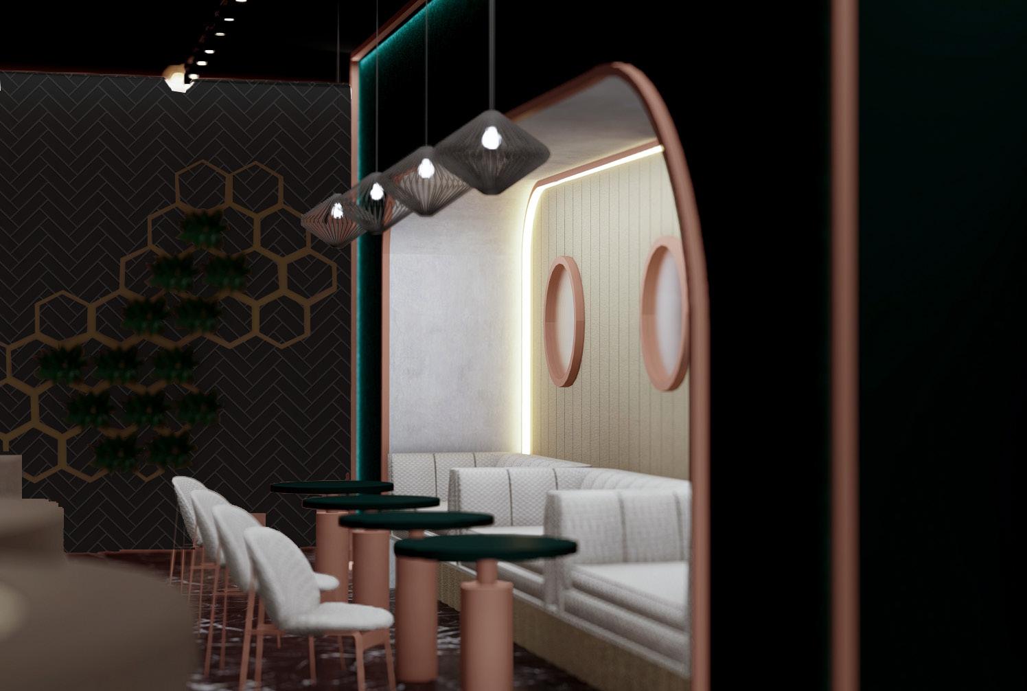 The initial design iterations were put together and presented through Midjourney to get a sense of the clients vision and our vision of the space. The final design iterations were modelled and rendered within a space of 10x20m to get a sense of scale and realism for the investors to clearly understand the concept.
