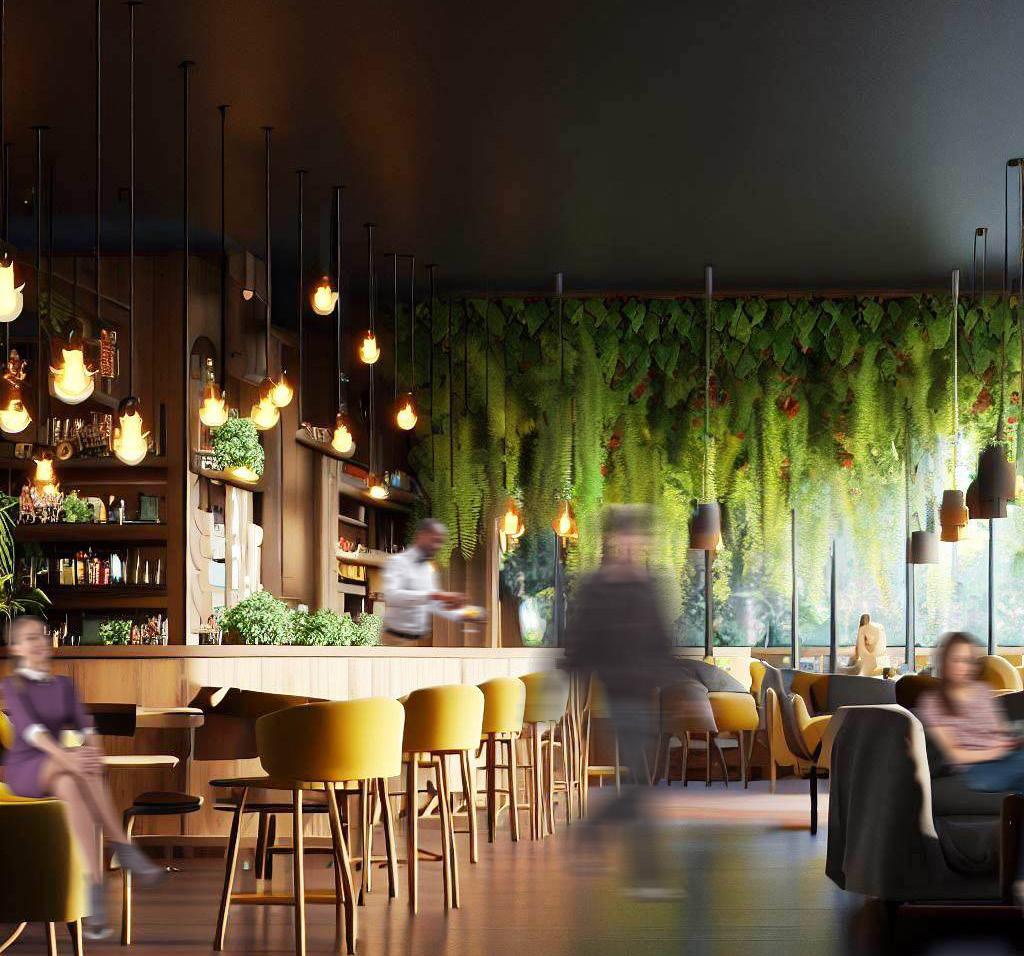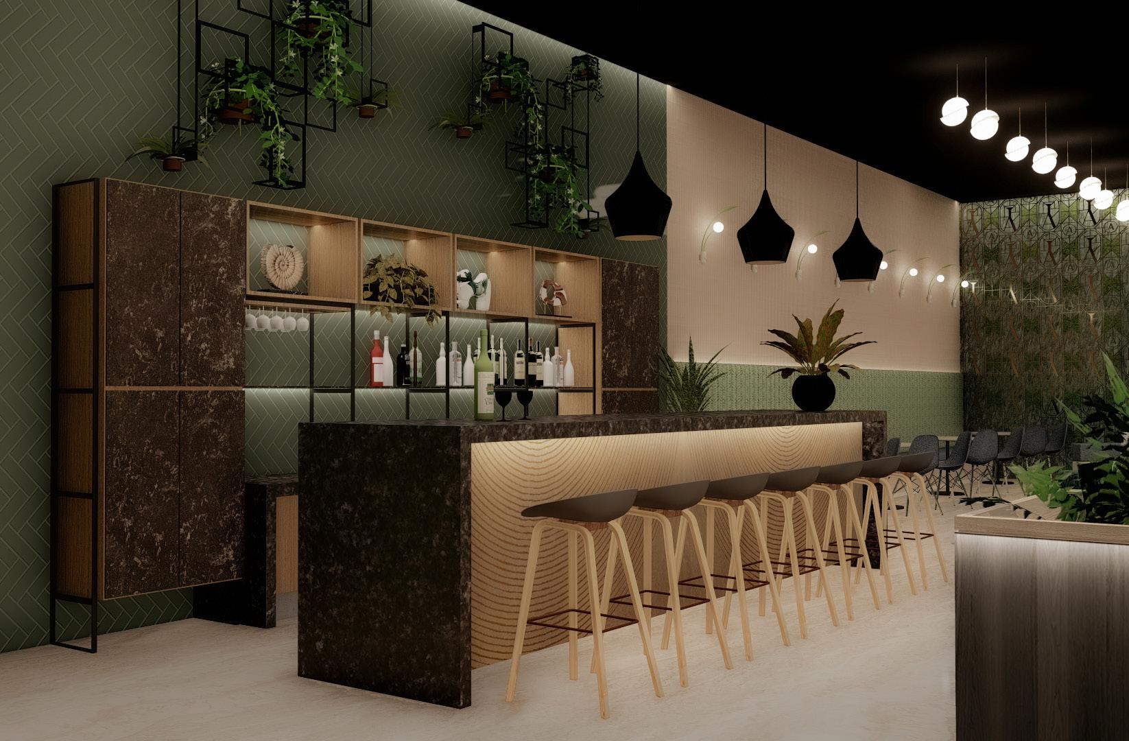 This project was for clients in Canada who were planning to pitch a Zero Spirits Restobar to investors. The design brief was to create the look and feel of the space as there was no site or space available for designing. The branding incorporated muted and earthy tones for their logos and mockups. The idea was to engage all 5 senses architecturally through the usage of natural elements like tropical plants, stone textures, comfortable furniture and seating spaces. The space was meant to be open in the evenings due to which lighting played an important factor. The spaces could range from brightly lit and active spaces to dimly lit and introverted spaces for more intimate settings.