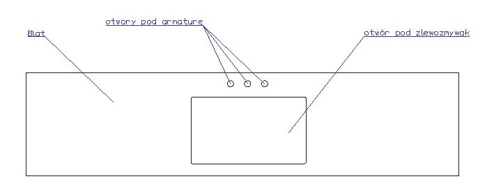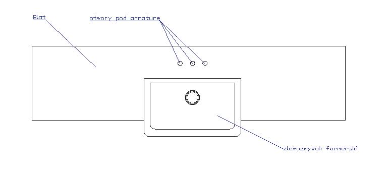 Na życzenie klienta wycinamy niezbędne otwory pod armaturę sanitarną. Standardowo mają 3,5 cm średnicy. Wymagane jest jedynie podanie ilości i dokładnego umiejscowienia otworu. Warto zaznaczyć, że otwór powinien być odsunięty od krawędzi blatu o min. 3 cm.