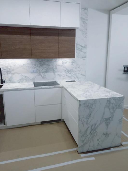 Nowoczesne wnętrza charakteryzują się jednolitą kolorystyką. Wychodząc naprzeciw oczekiwaniom rynku jesteśmy wstanie wykonać obłożenia frontów meblowych, tak aby państwa kuchnia wyglądała jeszcze bardziej zjawiskowo. Dzięki zastosowaniu bardzo cienkich płyt ze spieku kwarcowego (3 mm grubości) mamy pewność, że nasza zabudowa nie zwiększy swoich gabarytów, a fronty nie będą zbytnio obciążone.