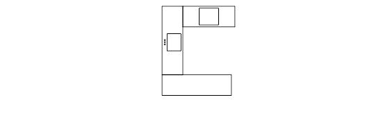 Nadaje się do kuchni połączonych z salonem lub jadalnią, gdzie dwa blaty ustawione są pod ścianami, natomiast ostatni blat pięknie oddziela pomieszczenia, jednocześnie je łącząc. Bardzo nowoczesne i praktyczne rozwiązanie, zapewnia dużą przestrzeń zarówno do przygotowywania posiłków, jak i ich spożywania.