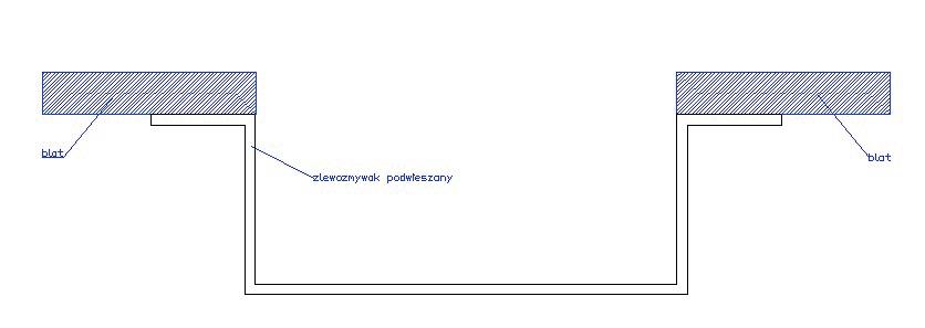 Bardzo nowoczesne rozwiązanie, które nada szyku każdej kuchni. Zakupiony zlew, którego producent przewiduje podwieszany sposób montażu zostaje podklejony do spodu blatu. Wszystkie łączenia i uszczelnienia wykonywane są na niewidocznych krawędziach. Dzięki temu rozwiązaniu korzystamy z gładkiego jednolitego blatu, bez zbędnych wystających elementów. Do zlewów podwieszanych bardzo często musimy zastosować przewis – jest to około 3-5 mm, w zależności od zaleceń producenta. Oznacza to, że wycięty otwór w blacie jest minimalnie mniejszy niż komory zlewu. Na życzenie klienta możliwe jest wycięcie idealnego otworu bez przewisu. W takim przypadku zlew powinien być dostarczony do naszej firmy w celu wykonania specjalnego przymiaru.