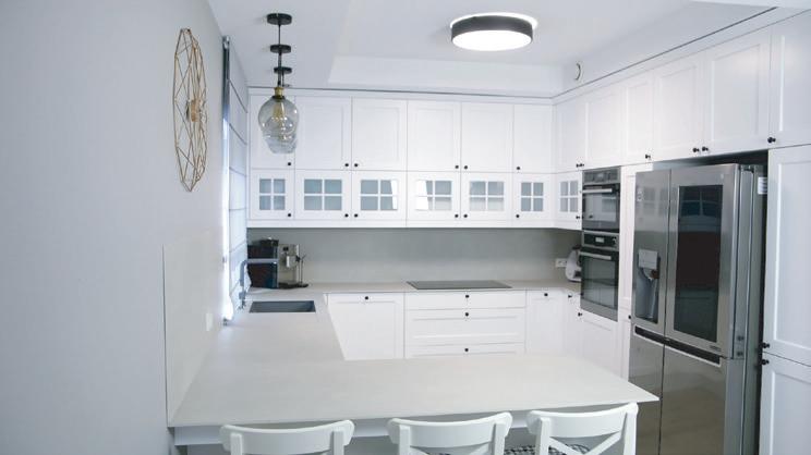 Wyspa gwarantuje dodatkowe miejsce do przechowywania naczyń i przyborów kuchennych. Stanowi niepodważalny walor estetyczny nowoczesnych wnętrz, jest idealnym miejscem do pracy zdalnej, spożywania rodzinnych posiłków czy spotkań towarzyskich.
