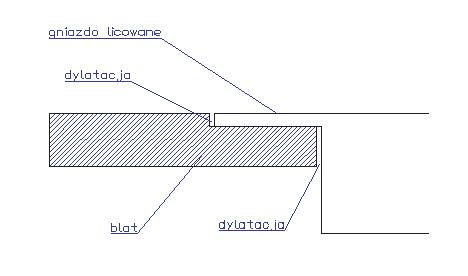 Aby zapewnić odpowiednie warunki, w miejscu łączenia blatów wymagana jest min. 1 mm szczelina. Powstałą dylatację wypełnia się silikonem w kolorze blatu.