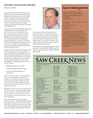 General Manager’s Report By David W. Martin PUBLICATION OF THE SAW CREEK COMMUNITY ASSOCIATION, INC. © 2011 5728 Decker Road • Bushkill, PA 18324 P: 570.588.9329 E: info@sawcreek.org