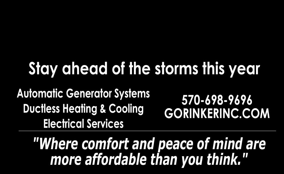 Family owned since 1937 Plumbing • Heating • Air Conditioning • Fuel Oil Residential Energy Savings Agreement Ask about oil discounts with the Total Comfort Plan Heating System (oil and propane) maintenance Heating System design, replacement, service Plumbing service Water heater service and installs (tank & tankless) Seasonal home winterizations 24 Hour emergency service Oil tank replacement Automatic oil delivery Discounted budget / payment plans 805 Church St • Hawley, PA 570.226.4823 www.paupackfuel.com PA002918 • Stainless Steel Liners & Caps • Woodstove & Fireplace Inserts Installed • Wooden Chase Chimneys Rebuilt & Repaired • Fireplaces, Wood & Coal Stoves • Masonry Chimneys Rebuilt & Repaired • Gas or Oil Chimney & Furnace Cleaning • Animals & Any Other Blockages Removed Gouldsboro Chimney & Furnace Cleaning $10 OFF CHIMNEY REPAIRS & CLEANING WITH THIS AD (570)676-5253 CALL TODAY: