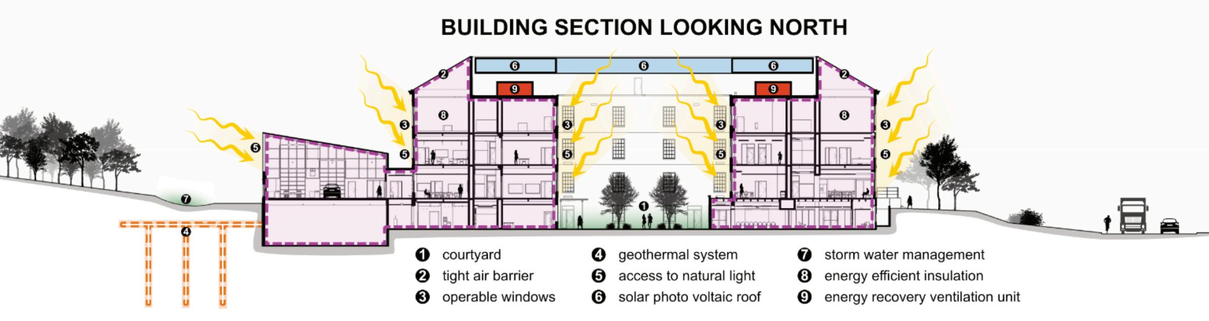 My main role in this project was to create diagrams, drawings, and renderings. I actively communicated with various engineers and consultants to address and resolve any issues one would expect in a project of this scale. I was responsible for creating all of the graphics that you’ll see in this portfolio, including the one above. While I worked independently on the drawings and visuals, there were brief moments of collaboration on some.