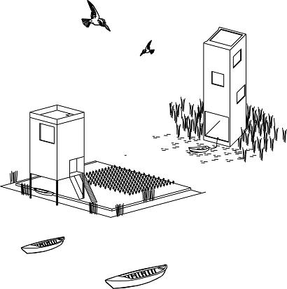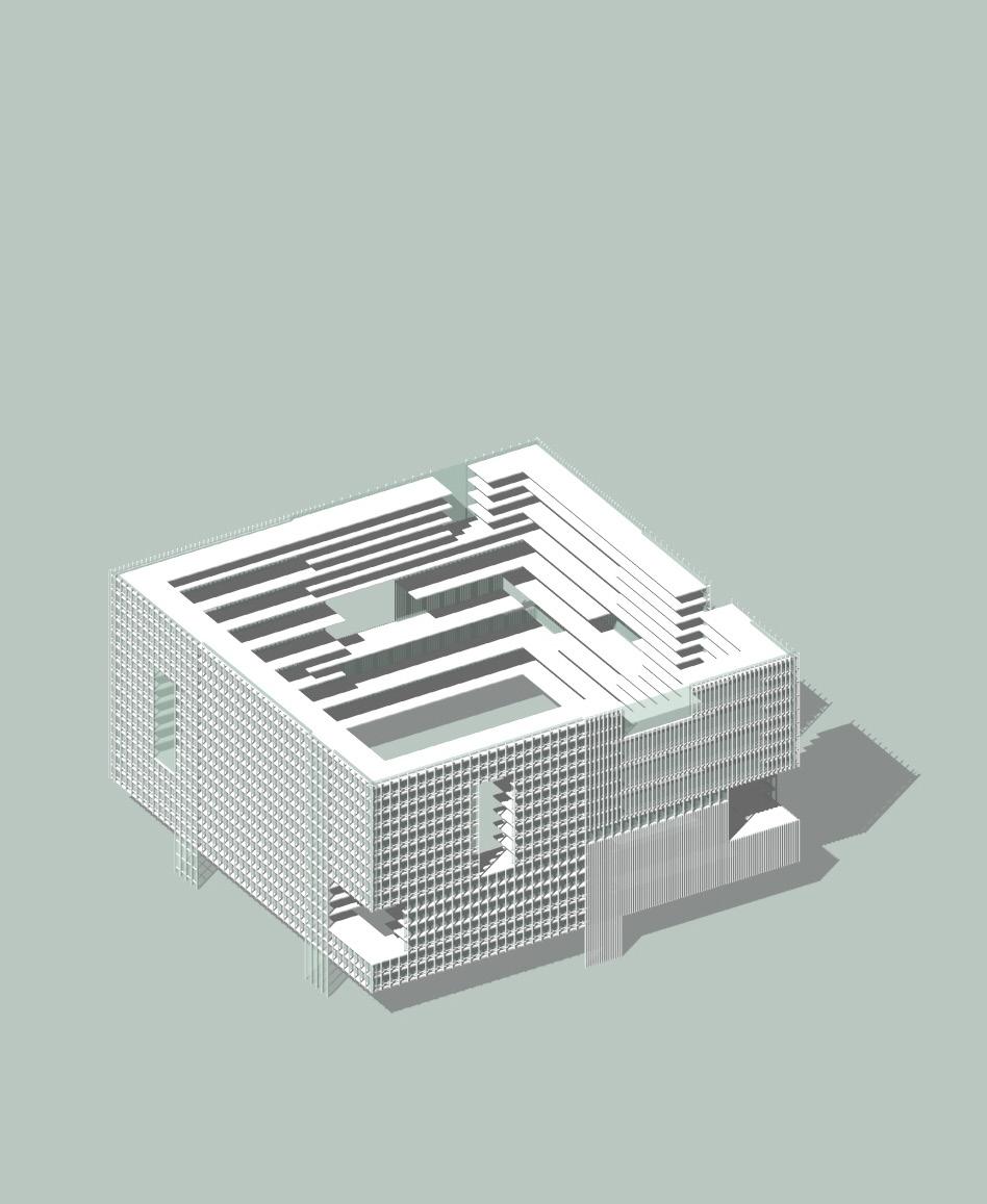 The idea of building a volume that follows the edges of theforest was derived from analysis of the built as well as the unbuilt environment . The uniqueness of the given plot is that it is “ an opening in the forest” and since the first terrain surveys it has been kept as such. As follows, the main task was to maintain the void as a balancing structure in the dense forest. The contours of the building follow the edge of the forest and not the ones of the parcel, which are imaginary and not present in the physical world.
