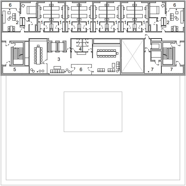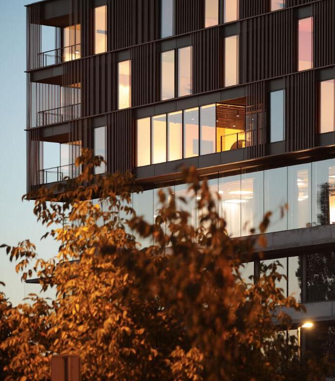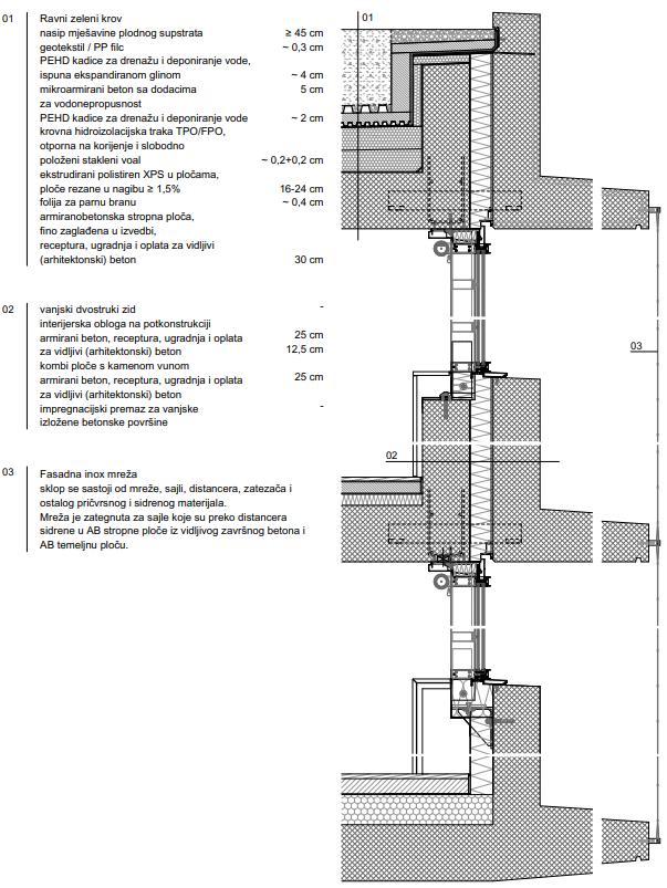 Public spaces, a roof terrac, a restaurant and a lecture hall, connect the business and residential part of the building and are located on the fourth floor. The housing units are grouped in the north, and the sunny southern part of the green roof is provided for rest, sports and recreation. The greenery present on the façade is an organic façade that changes its appearance with the change of seasons, protects the building from the sun and gives it a visual identity.