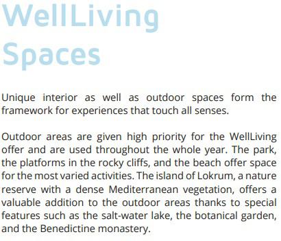 Grand Villa Argentina is a 5 star hotel in Dubrovnik, Croatia. With a total of 122 keys it is conceived as a mini luxuy hotel on a site flanked by historical villas. In a city unique as Dubrovnik one thing is crucial - to stand out but still keep the link to nature and rich history of the surrounding area. The concept for the hotel was devised using the Brand Essence Wheel anwsering the following questions: