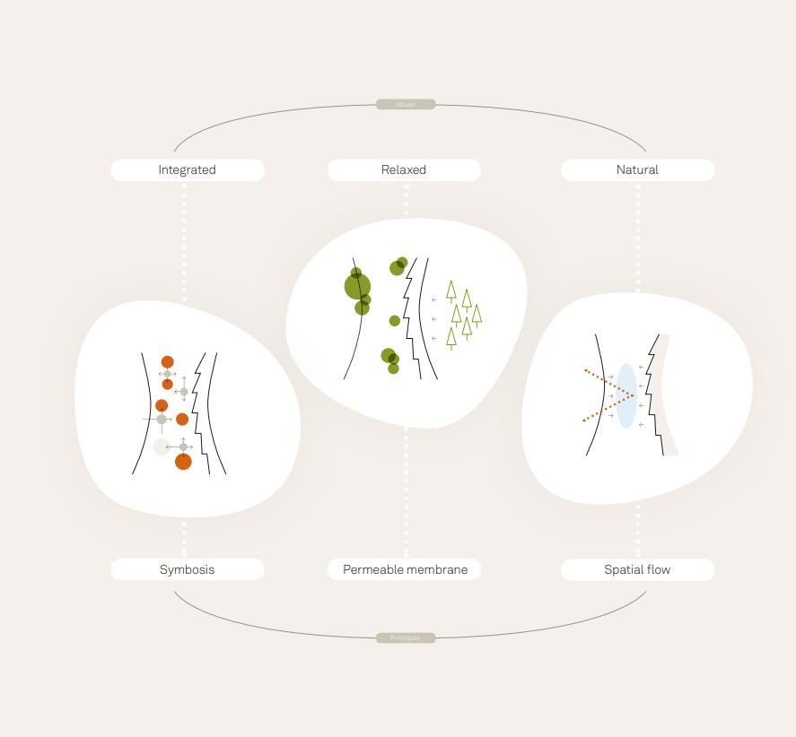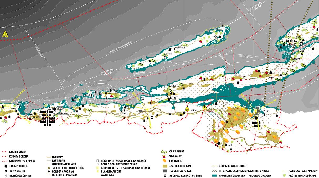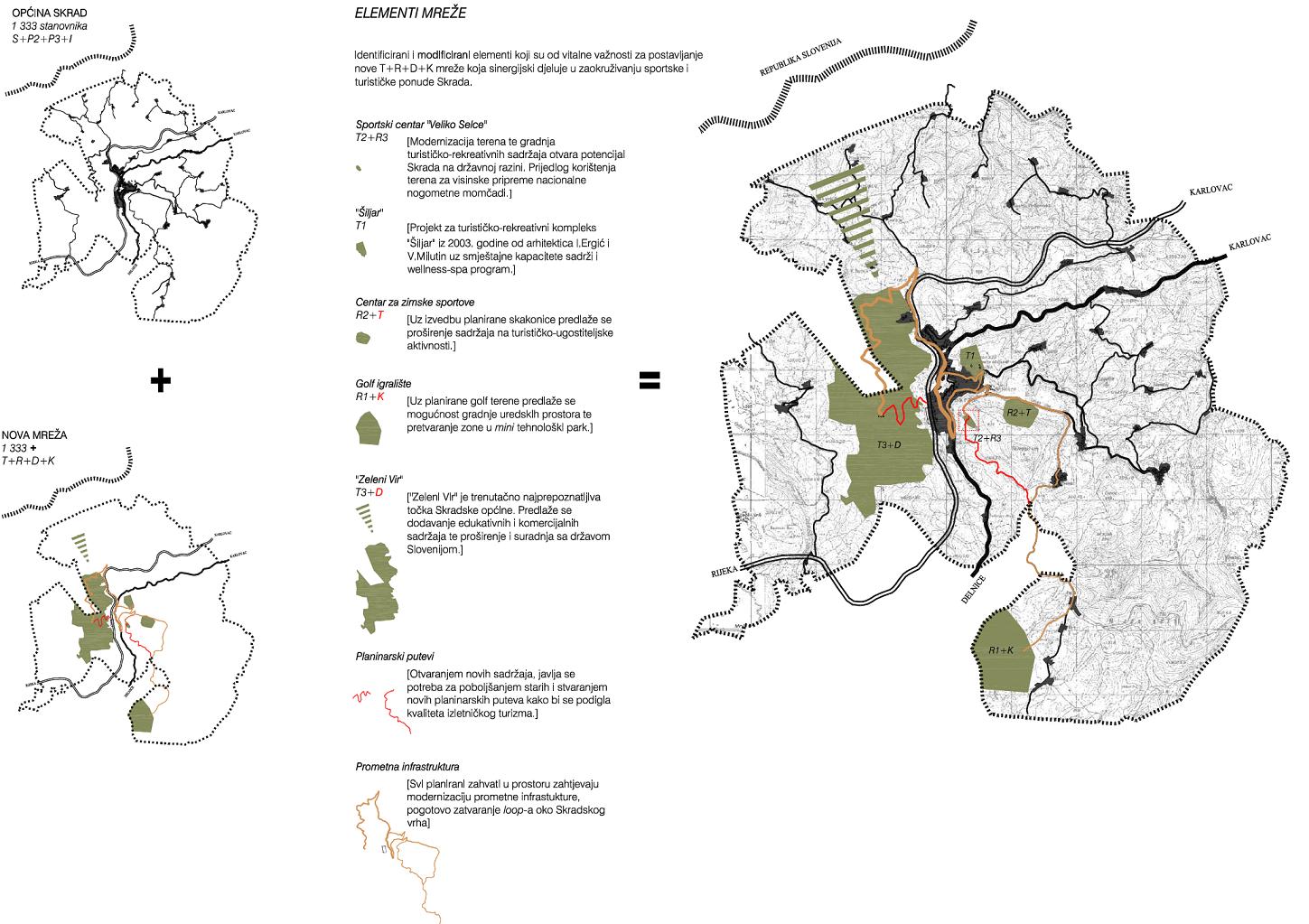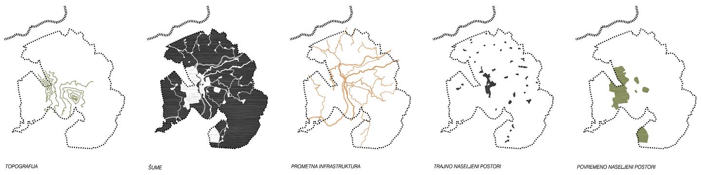 The problem today is the demand for high-intensity exchange and the economic policy of the municipality, which focuses on tourism. Taking the existing network of transport infrastructure and the continuously inhabited area, the idea is not spreading and zoning of existing settlements but a superposition of the new network with periodically populated areas. The new network hosts facilities of interest to the everyday life of the municipality in terms that, in addition to creating jobs, it provides activities for both tourists and residents themselves.