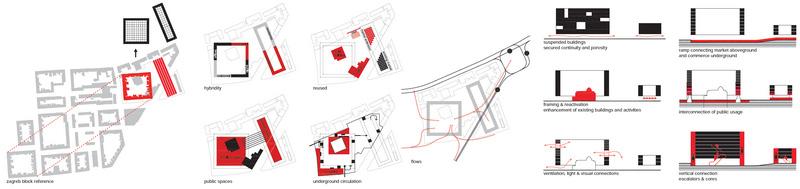 The Badel Urban Redevelopment constitutes a strategic urban ‘attractor’ for the city of Zagreb. It reinforces and restructures the intermodality and urbanity around Kvaternik Square. The proposal interprets the design brief in terms of an urban programmatic repair and spatial re-composition, a ‘machine of town regenerations and relationships’. To enhance the existing urban tissue, we implement 3 main ingredients: