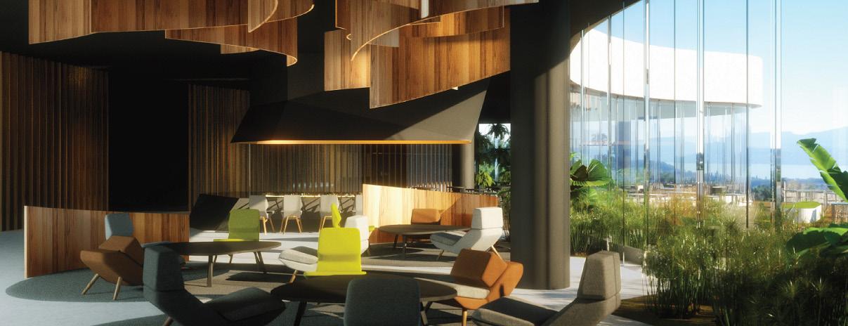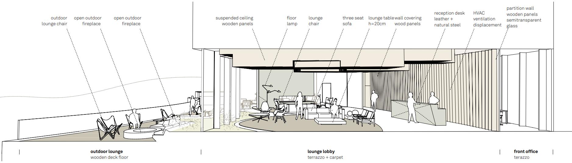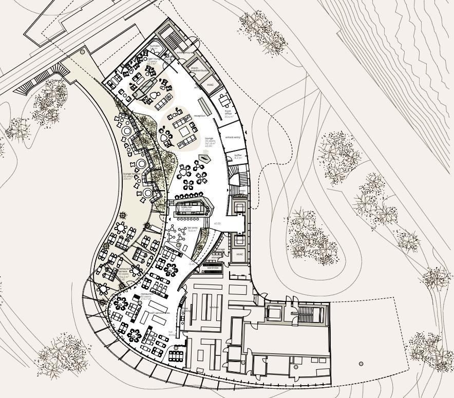The hotel itself lives with the nature that surrounds it and permeates its artificial structures to create a more natural living space for people that will inhabit it.