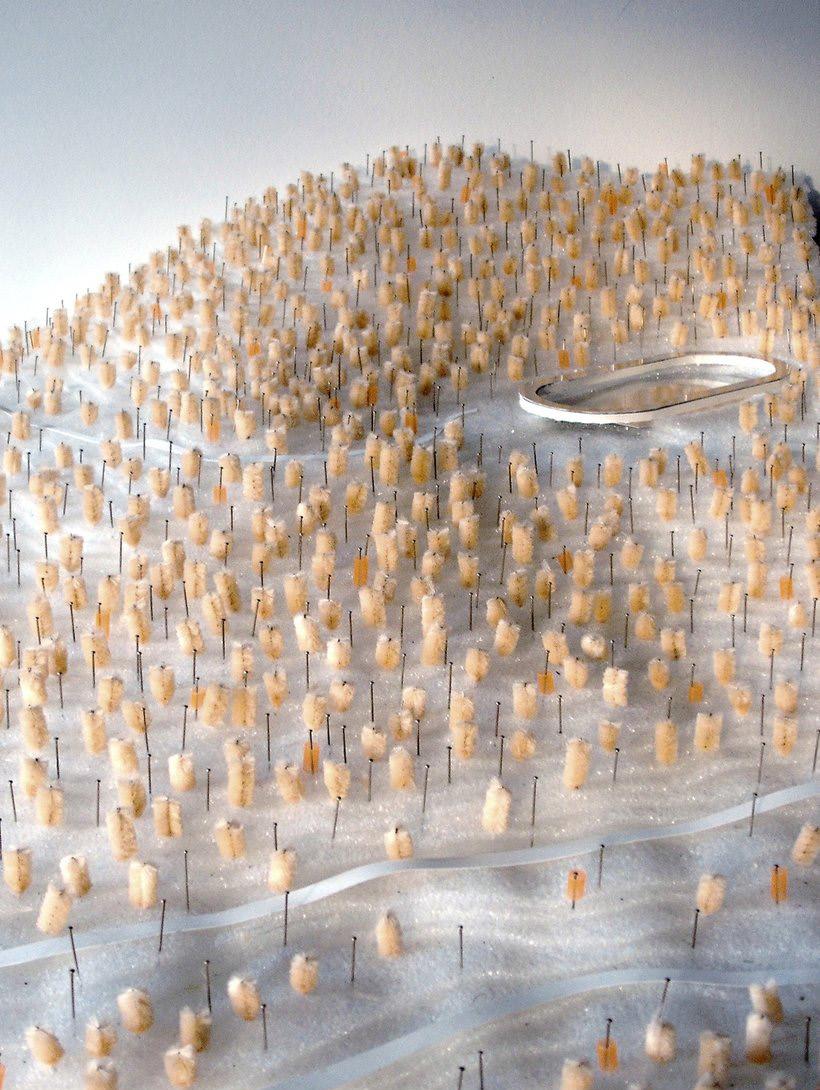 The existing soccer field has a tradition that goes back to the early 20th century and is without a doubt a form of human activity well established in the area. Because of this strong tradition the architectural conception and composition can be attributed to the stadium typology but due to changes in the content of the buildings envelope the programme becomes more porous in contact with the surrounding landscape and the clash with the surrounding terrain resists and/ or accepts the existing topography.