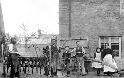 The Cripps Family, the other Bampton blacksmiths, outside Cromwell House, premises which were taken over by 0. 0. Collett in 1908 following the death of Mr. Cripps senior.