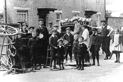 So much for the ‘name’ and the early history. During the centuries which followed, the fortunes of Bampton relied upon agriculture and the growth of a thriving leather industry. Possible traces of old tan pits have been identifed in the garden of Box House in the Market Square and during the seventeenth and eighteenth centruies in particular the town was famed for its glove-making, gaiter and sheepskin products. By the end of the eighteenth century these activities began to falter and combined with the steady changes in farming practices (‘one man and a binder could cut as many acres in a day as twelve men with sickles’) the population of Bampton plummeted from a figure of 1700 in I861 to 1167 in 1901. In spite of the new railway built in 1873 (see page 61), Bampton had by then become a ‘village’, a description not entirely disliked by the large number of newcomers who began to ‘infiltrate’ the community. Indigenous residents - an ever dwindling proportion - still called Bampton a ‘town’ and some of the photographs in this book illustrate the number of family businesses and shops which have thrived in Bampton, one or two of which we still have today.