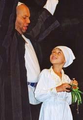 visa in time and we had to resort to some rather complex (albeit successful) cast substitutions for the later performances. Another no-show was at our St John’s Smith Square performance of Romeo and Juliet in 2007: on the day our ‘Friar Lorenzo’ found himself grounded in Amsterdam with cancelled flights. We were hopeful he would just make it back in time for the performance, but at 7.20 pm there was still no sign – I was hastily costumed and went on stage for Act 1 (when fortunately it was a speaking role only) with a crib text conveniently secreted in Lorenzo’s prayer-book. Our singer just made it back to London at the very end of the interval: I gratefully handed over the costume and the audience was spared my inadequate singing in Act 2.
