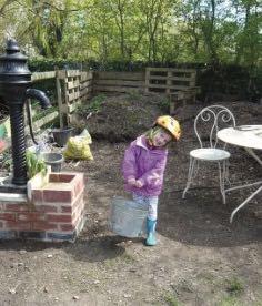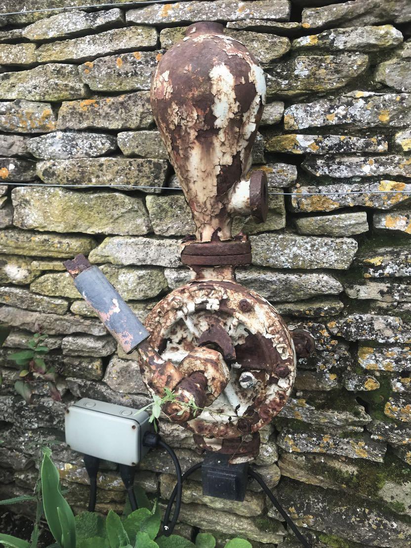 This is a good example of more modern well digging. This new well is in the garden of Westbrook House. It was drilled in December 2020 and the installation completed in April 2021, and it is now used for garden irrigation. It was sunk using simple percussion drilling technique and a cutting tool. The borehole depth drilled is 5.5m and is capped by a manhole cover. The suction tube is inserted into the borehole and connected to an off-set electric pump draws the water to a tank. Irrigation controls control pumping and ensure that the garden is irrigated as and when required and automatically cuts off when rain is detected thus saving electricity and manage the use of water. Rather different to the traditional open wells of days past!