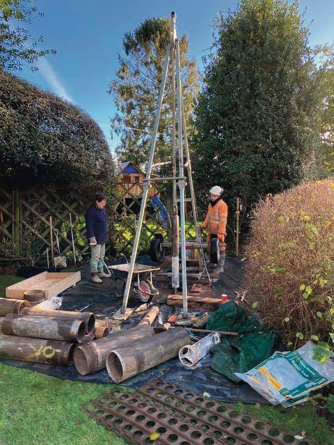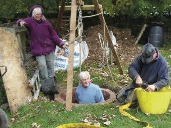Nigel’s interest in wells was stimulated by seeing a pamphlet on “Building a Well Safely” from the Centre of Alternative Technology, Machynlleth near Aberystwyth. Knowing that the water table is quite high locally he had to try it out. Also, Nigel’s grandfather was a dowser and so Nigel had grown up seeing this skill being used, and he did use dowsing (a pendulum in this case) for this job to check on the best site although as Jane observes one does not really need to be a dowser to find a good well site in Bampton. Jane is also interested in the spiritual and healing aspects of dowsing.